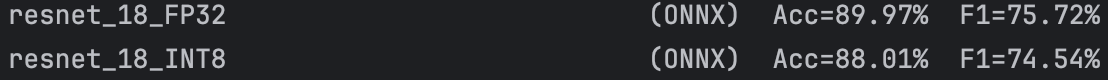 RN18 quantizes much better, indicating the issue lies with the ENB0 model itself. Note, RN18 INT8 is not immune to accuracy loss, however it’s to be expected and a ~2% accuracy loss is palatable with the inference speedup.