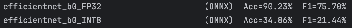 The accuracy drop is huge! The quantized ENB0 is unusable - time to find out why!